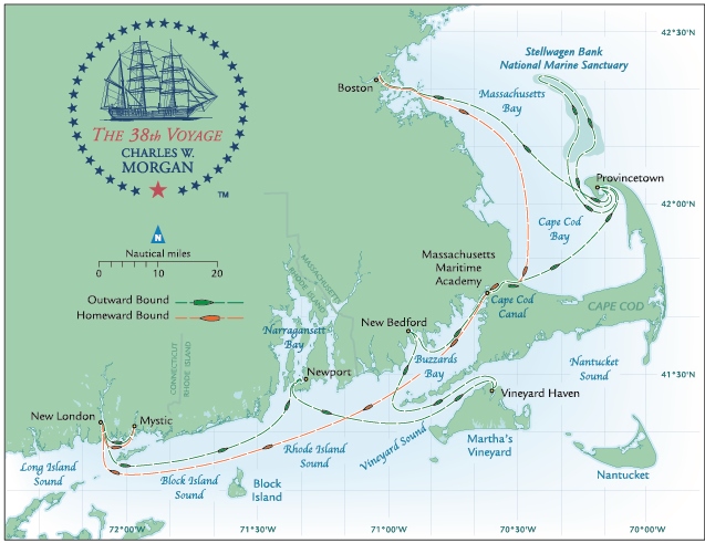 On June 14, the Morgan will leave New London and begin her journey up the coast of New England. You can see her at ports around the region all summer; this travel itinerary shows all of the stops on her tour.