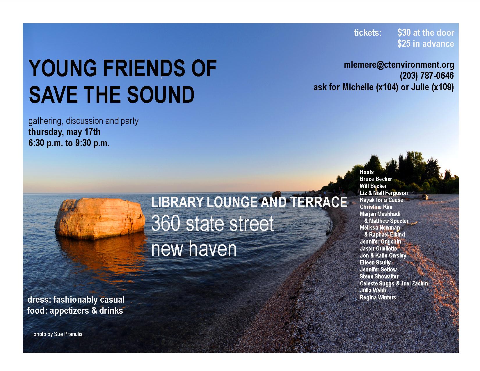 This Thursday, we will be having our inaugural Young Friends of Save the Sound party at library lounge at 360 State Street in New Haven.