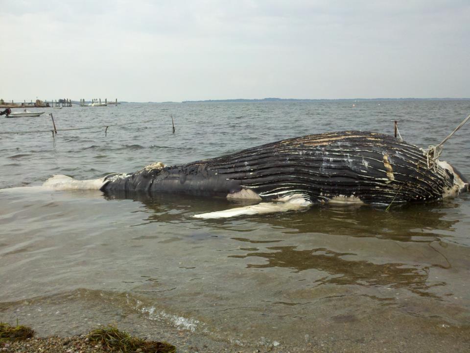 According to the New London Day, a small, 20-foot female humpback whale washed up ashore in Stonington yesterday. The whale was found floating at a beach in the Lords Point area. Officials state that the whale had been dead for about a week and was brought to shore by the tides from Fishers Island Sound.