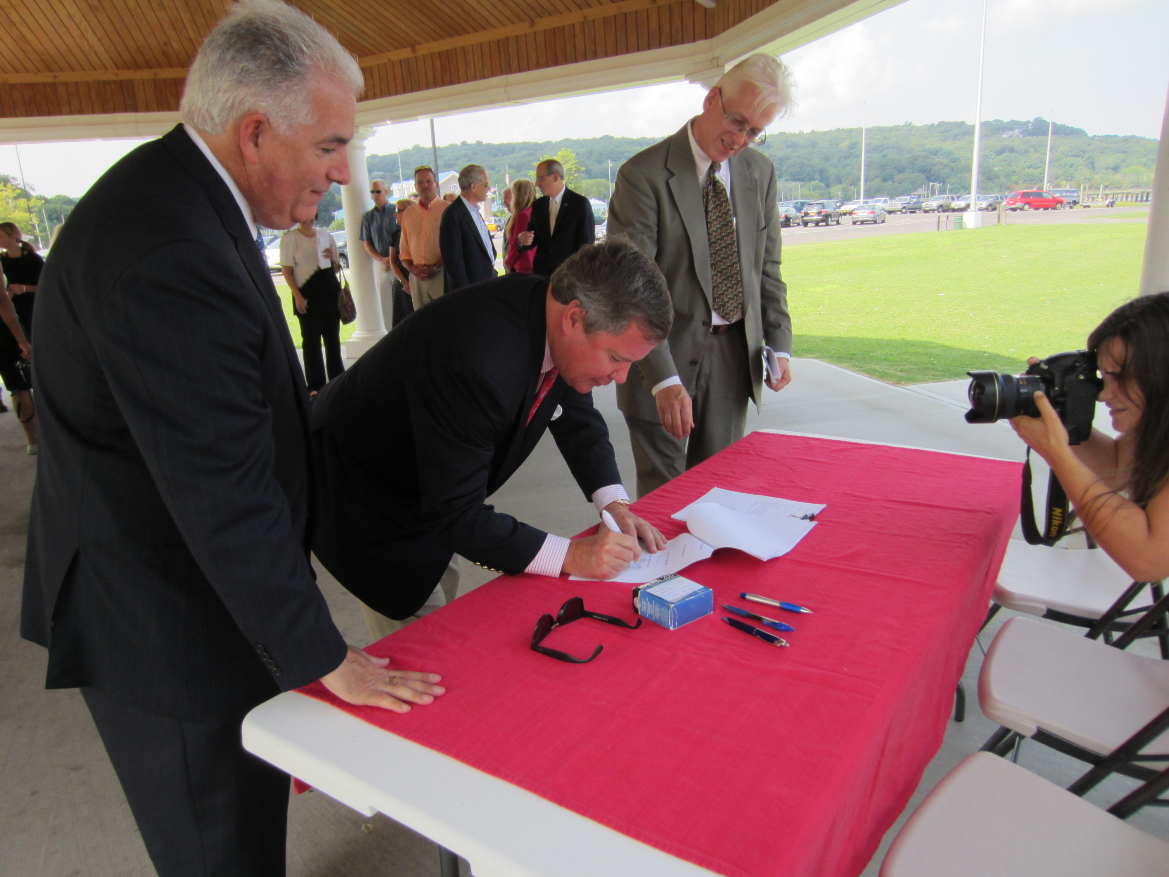 This past Wednesday, elected officials representing 14 municipalities in Long Island formally established the Oyster Bay/Cold Spring Harbor Protection Committee. The signing of the Inter-Municipal Agreement codifies the relationship between the municipalities who have been working together since January 2010 at the recommendation of Friends of the Bay.