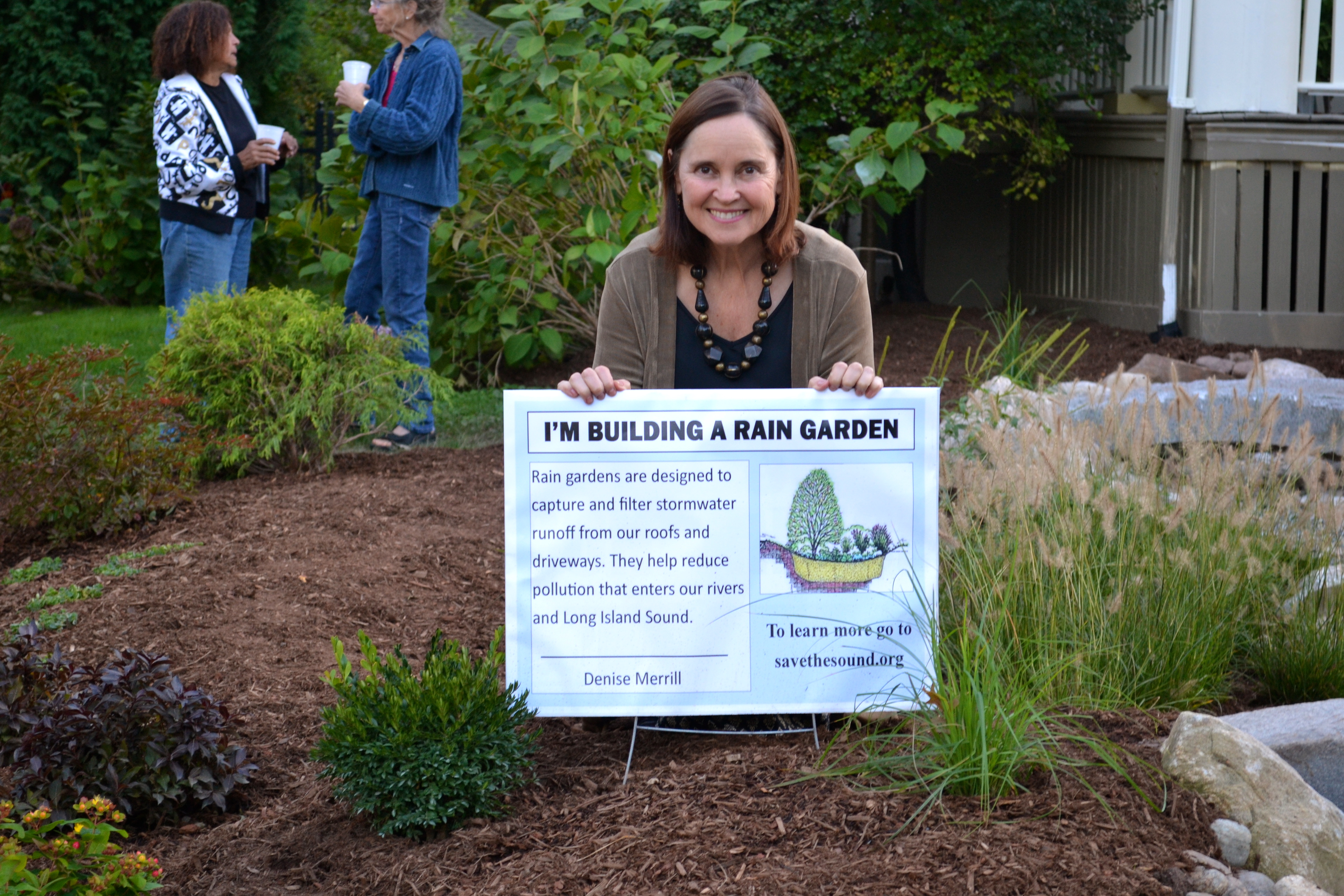 Yesterday, Save the Sound held an event with Secretary of the State Denise Merrill unveiling her new 201-square-foot bioswale/rain garden combination on the front lawn of her house in the West End of Hartford.