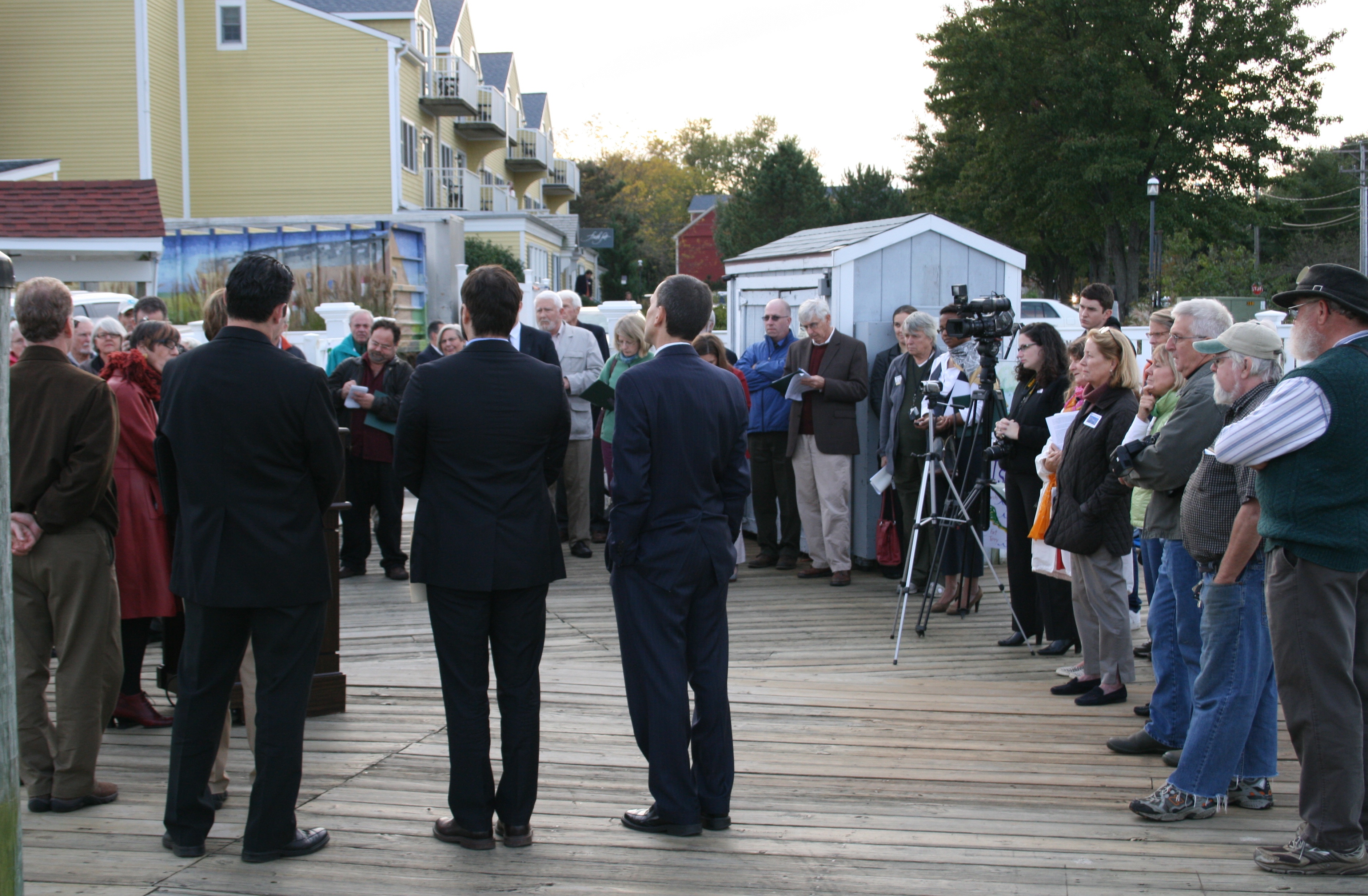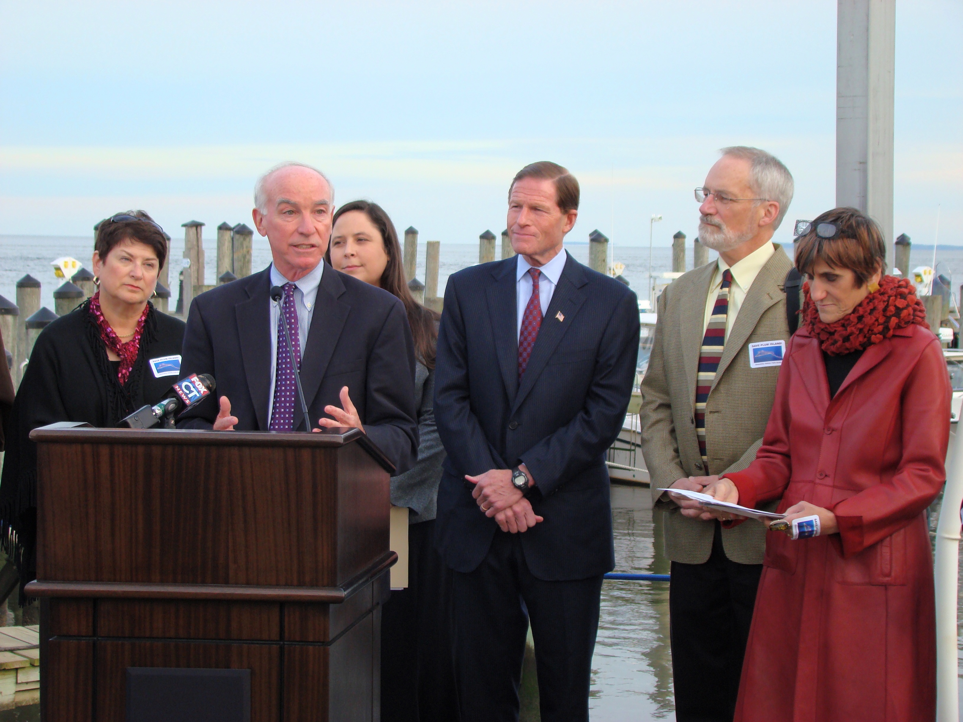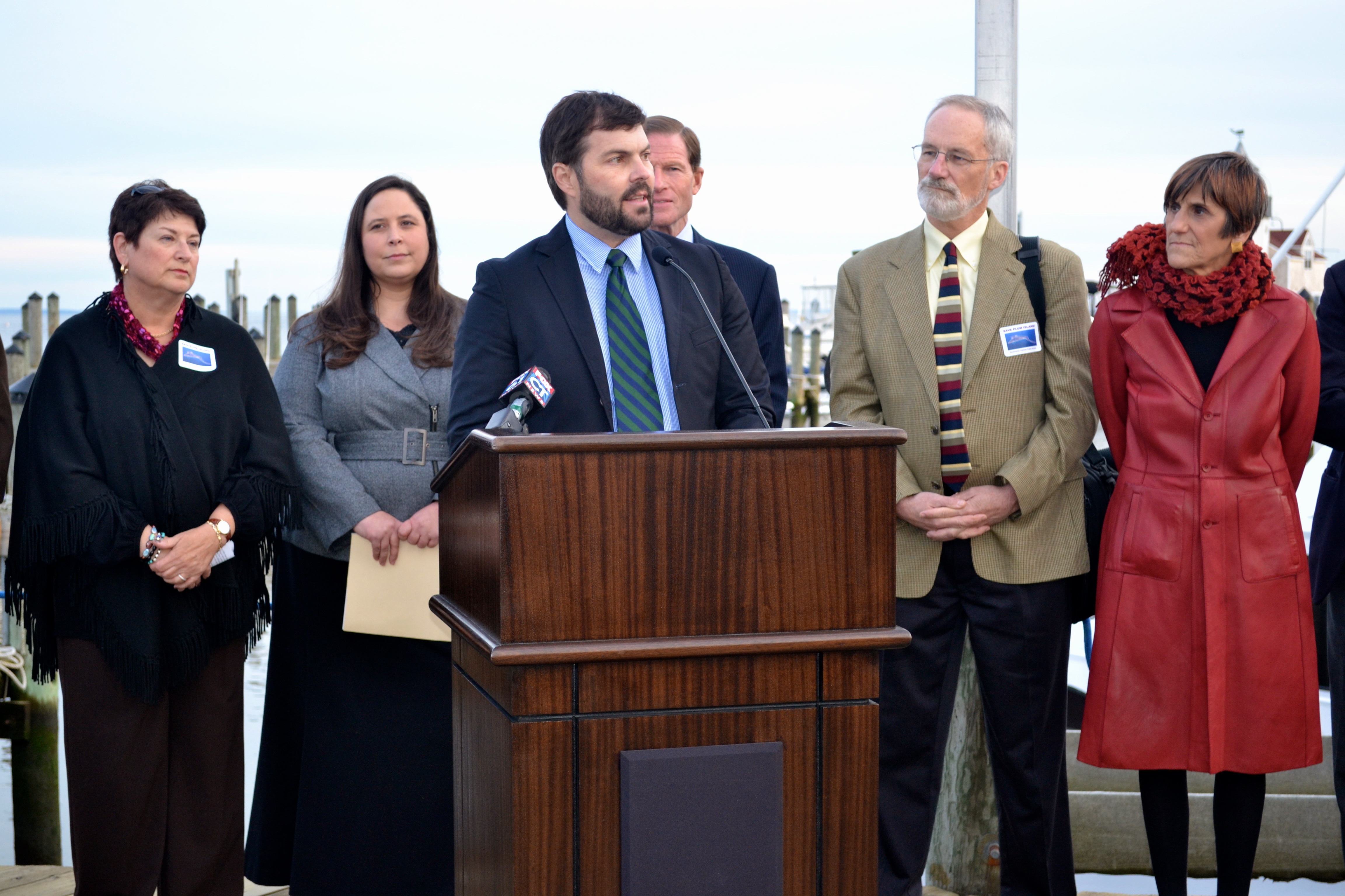 With a backdrop of the sun setting over the Connecticut River and Plum Island visible in the distance, we joined with a bipartisan group of people, including Senator Richard Blumenthal (D-CT), Congresswoman Rosa DeLauro (CT-3), Congressman Joe Courtney (CT-2), State Senator Andrea Stillman, State Representative Marilyn Giuliano, Old Saybrook First Selectman Carl Fortuna, Sandy Breslin from Audubon Connecticut, David Sutherland from The Nature Conservancy in Connecticut, and Lou Burch from Citizens Campaign for the Environment, to share our message: that we want a sale that conserves the approximately 750 acres of undeveloped land on Plum Island.
