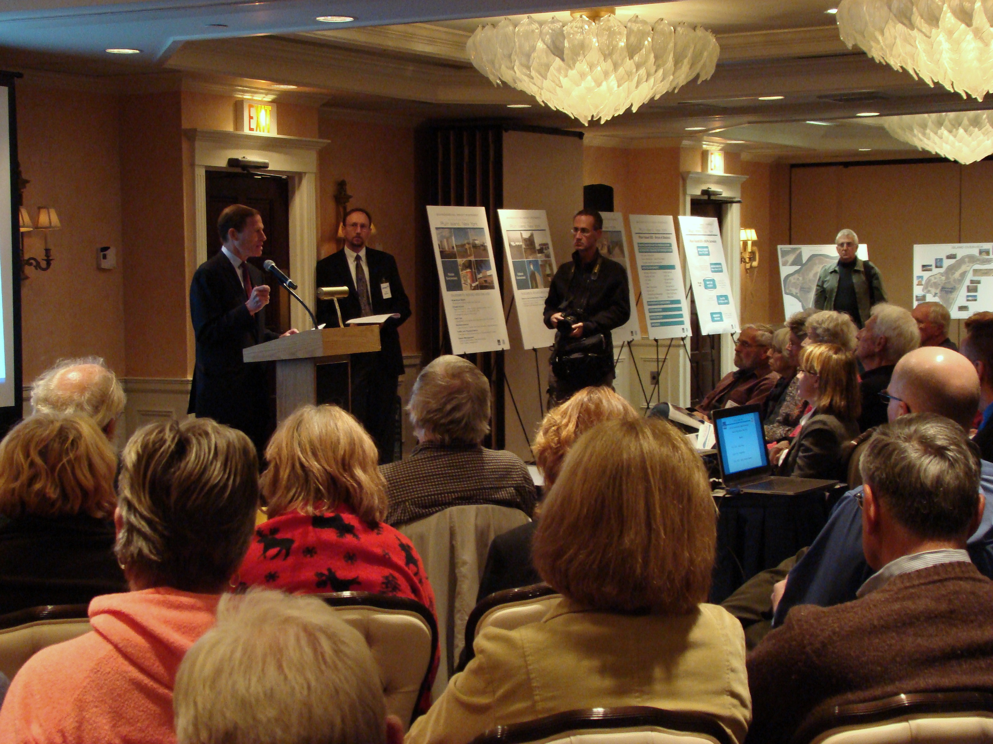 Save the Sound attended the hearing with a large group and beforehand, organized a rally with members of Congress, state legislators, local officials, and other advocates urging GSA to conserve Plum Island.