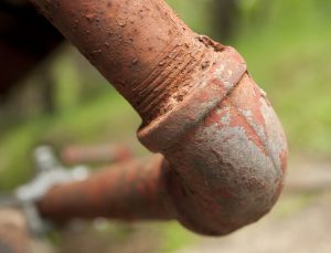 A rusty old pipe outside of my 101 year old home.