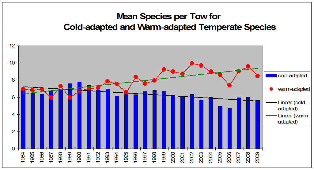 Oceanwide, herring—the forage fish for so many types of wildlife—are at risk from overfishing and being accidentally killed as bycatch. With the Sound’s water temperature increasing, we’ve seen a decline in cold water species like winter flounder, and an increase in warm water species like striped bass. graph 1