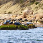 Around Plum Island lies the rocky intertidal zone, influenced by riptides named ‘Plum Gut’ to the west and ‘Sluiceway’ to the east. Some of the largest concentrations of fish in the entire Mid-Atlantic coast can be found here, as well as the largest grey and harbor seal “haul-out” in all of southeastern New England—up to 600 seals have been counted. In October, after two attempts in September were aborted due to rough seas, a team of scientists were deployed to explore the marine communities around Plum Island. “Our goal in one day was to document the eelgrass beds and other near-shore communities around Plum Island,” said Matt, “and maybe spot sea turtles foraging.”