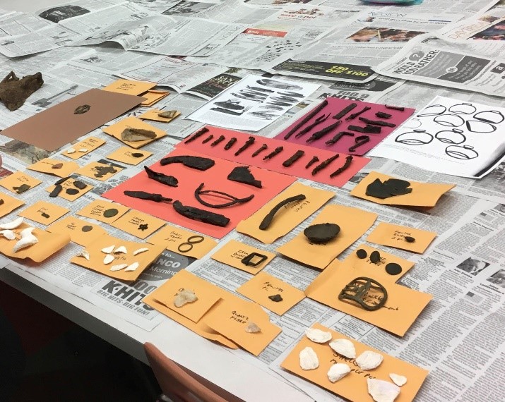 The first digs brought together students and Native American tribal archeologists to see if some disturbed areas were sites of Native American shelters and hunting tools. But little history could be determined. More recently, the students unearthed what they believe to be a hearth of a Colonial-era house. According to archeology experts, the amount of everyday materials and bits of charcoal found indicate that this was someone’s home sometime in the late 1700s to early 1800s.