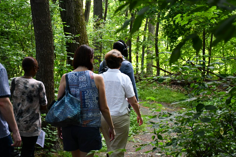 Supporters of Six Lakes walk a portion of a trail overlooking the property during a meeting to brainstorm ideas for a future park.