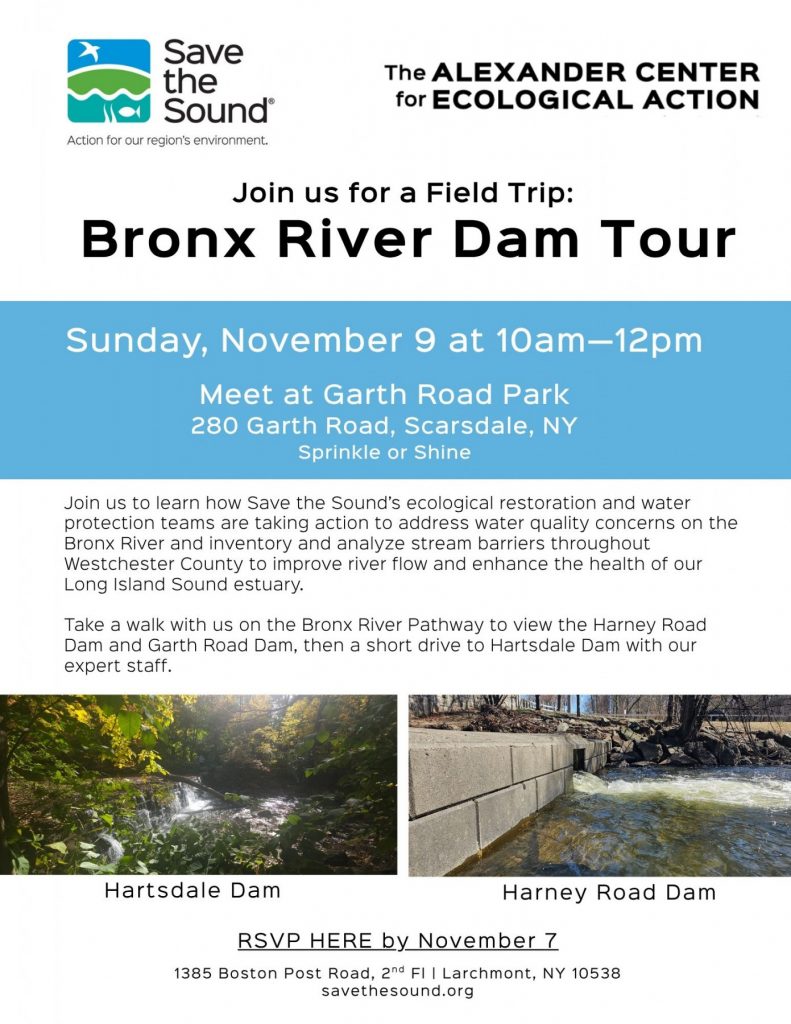 Take a walk with us on the Bronx River Pathway to view the Harney Road Dam and Garth Road Dam, then a short drive to Hartsdale Dam with our expert staff. Please RSVP below by November 7.
