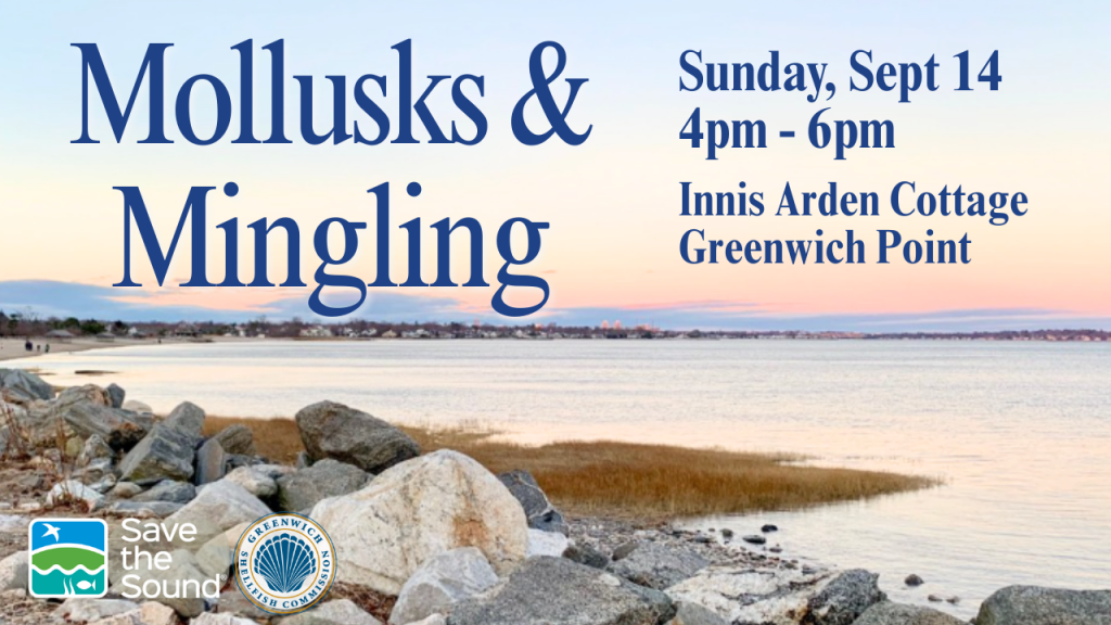 Please join us to enjoy the gorgeous views and salty breeze at the Innis Arden Cottage on Greenwich Point to celebrate and raise awareness for clean water initiatives by Save the Sound and the Greenwich Shellfish Commission. Raw bar, light bites, watershed model, presentation by Associate Soundkeeper Allison Rugila and Commission Chair Roger Bowgen.