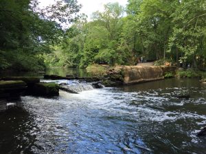 Carpenters Dam powered a small complex of mills known as Hough’s Mill, which was operating on the banks of the Quinnipiac River by 1776. Located near what is now the border of Meriden and Cheshire, the site was originally a grist mill – though eventually it cycled through several uses before becoming a stone grinding and polishing factory. The original wooden crib dam was encased in concrete in the early 1900’s, but was abandoned following the 1934 sale of the property to the City of Meriden. It remained a barrier to fish migration, recreation, and the flow of sediment until the city partnered with Save the Sound to demolish and remove it. During removal, some of the original wooden beams were salvaged, turned into furniture, and auctioned off in partnership with City Bench.